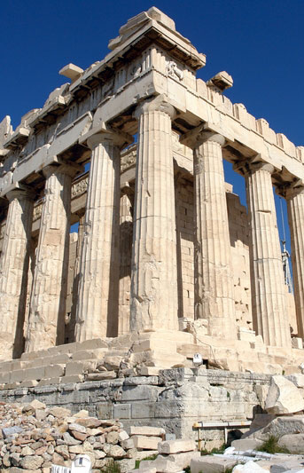 De flesta grekiska städer har ett Akropolis men Atens Akropolis räknas till ett av de viktigaste monumenten i världen. Namnet Akropolis betyder egentligen ”överst i staden” och det är precis det som klippan är. Akropolisklippan höjer sig 150 meter över havet och består av ett stort kalkstenberg. Akropolisklippan har haft en väldigt central roll i historien. Från början fanns inga tempel på klippan utan enbart en åtta meter hög försvarsmur. Under tiden 450-330 före Kristus byggde man flera tempel uppe på Akropolis, bland annat Parthenon, Erechtheion och Nikes tempel. De flesta byggnaderna uppe på Akropolis är byggda i marmor.